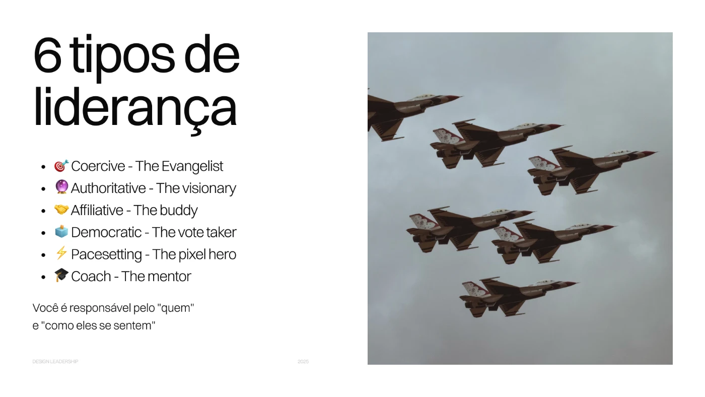 Fundamentos testados em escala: Design Leadership Framework, OKRs funcionais, estratégia de cultura, composição de times e estruturas que garantem entrega consistente.